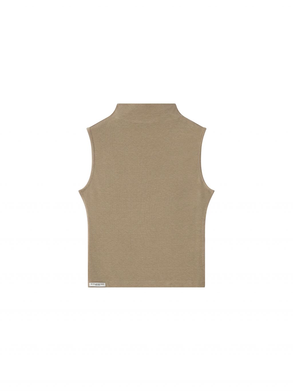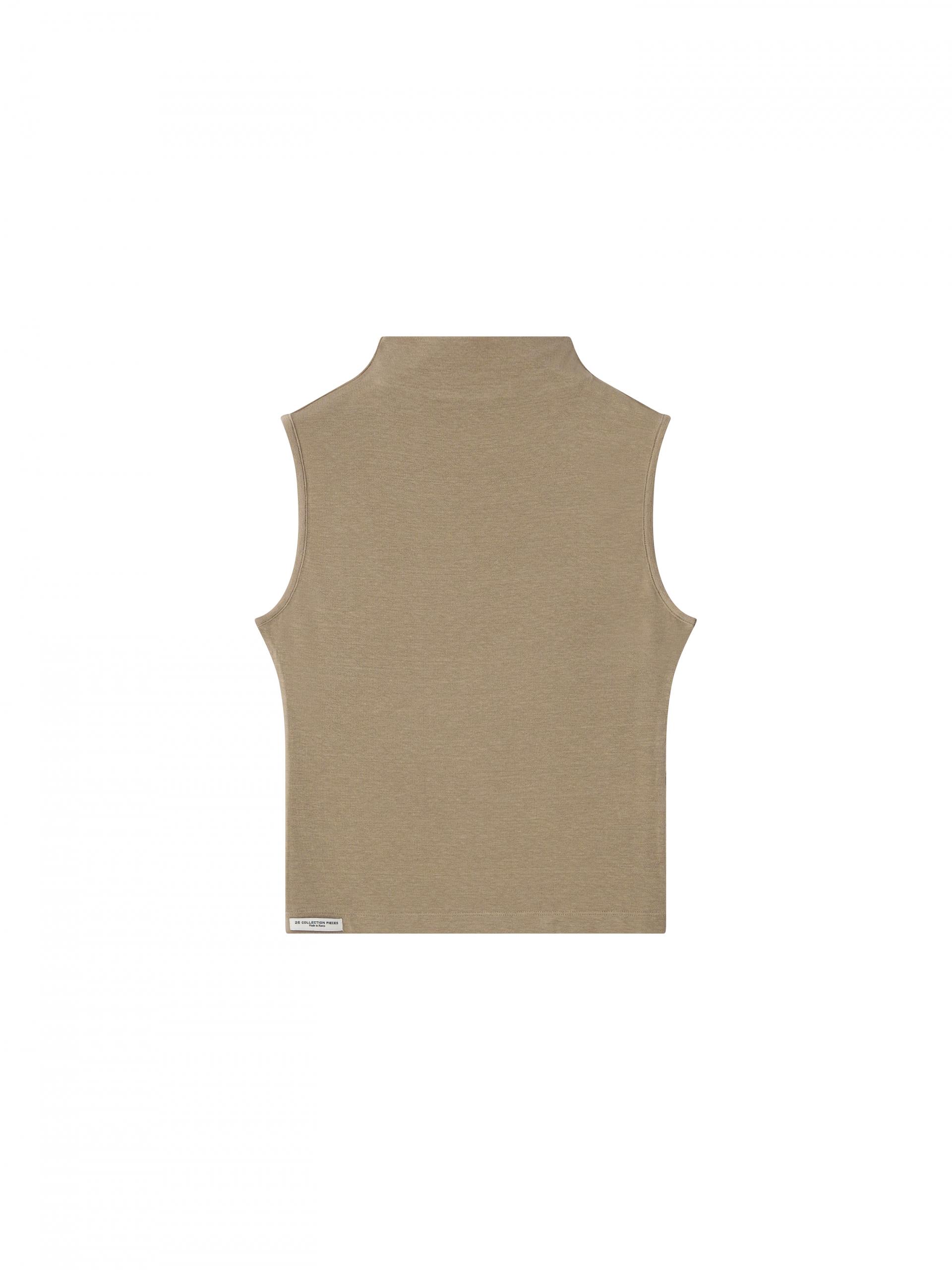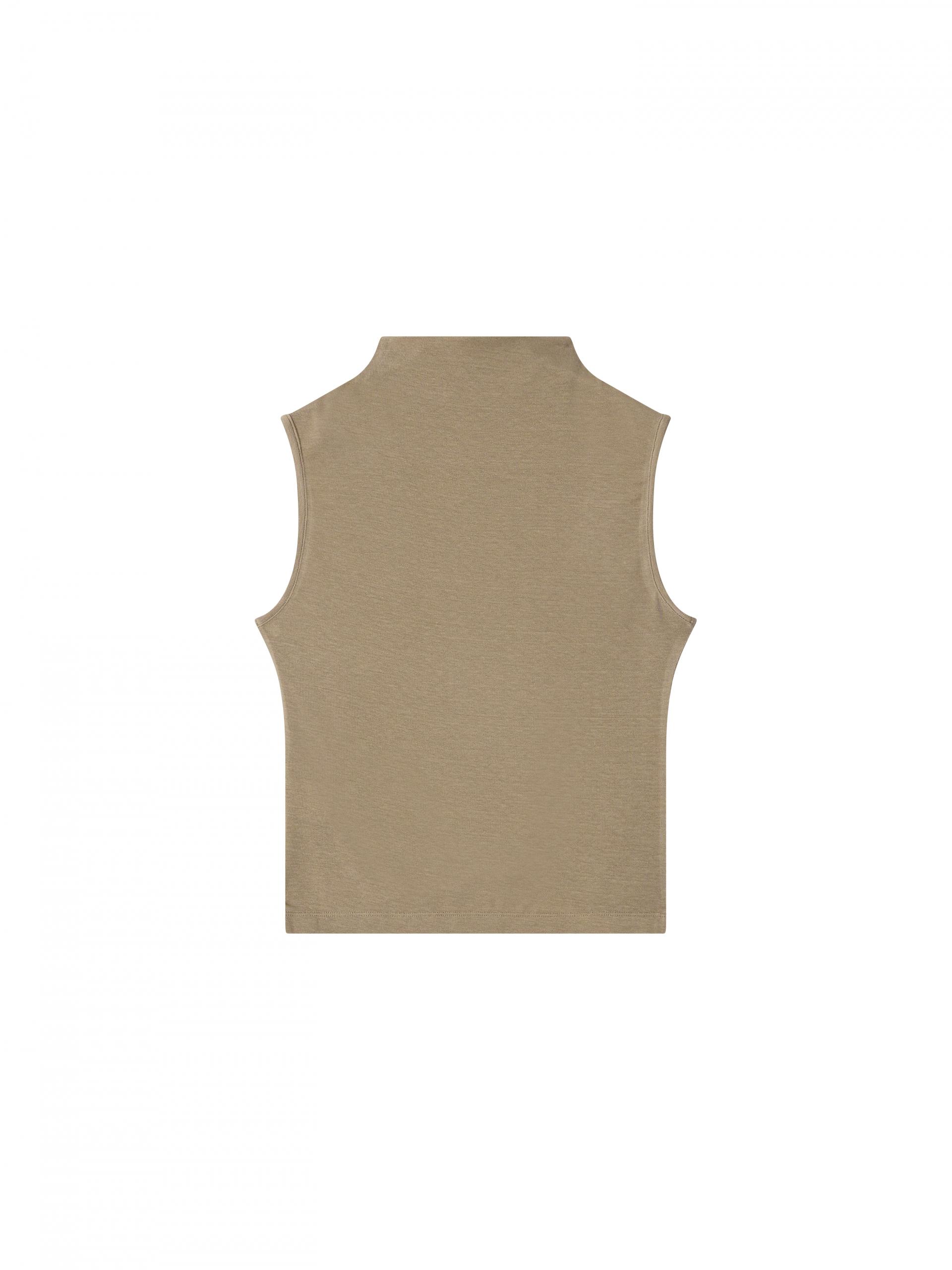 부드러운 톤의 토프 컬러로 담백하고 안정된 무드를 완성하는 슬리브리스 탑입니다.