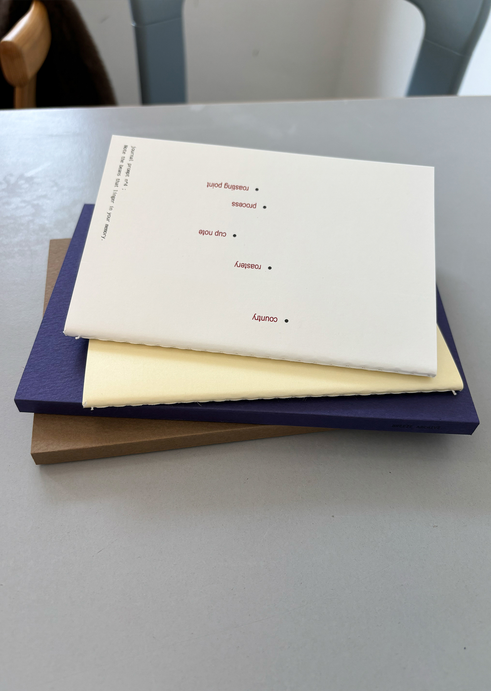 하루의 리프레시를 돕는 한 잔의 커피.기억에 남는 커피의 향과 맛을 커피 북에 기록해 보세요. 내부는 64페이지로 구성되어 있습니다.