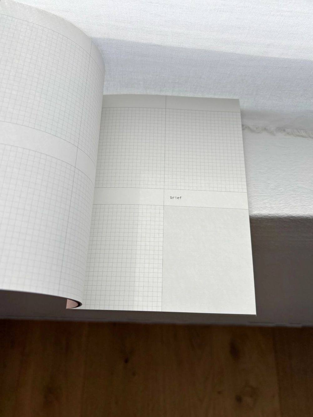 날짜가 인쇄되지 않은 만년형 구성으로 약 64주간의 기록을 담을 수 있습니다. 우측 하단의 'brief' 공간에는 한 주간의 요약이나 중요한 일정, 나에게 남기는 주간 피드백을 자유롭게 기록해 보세요.