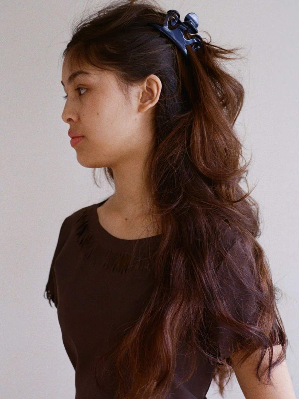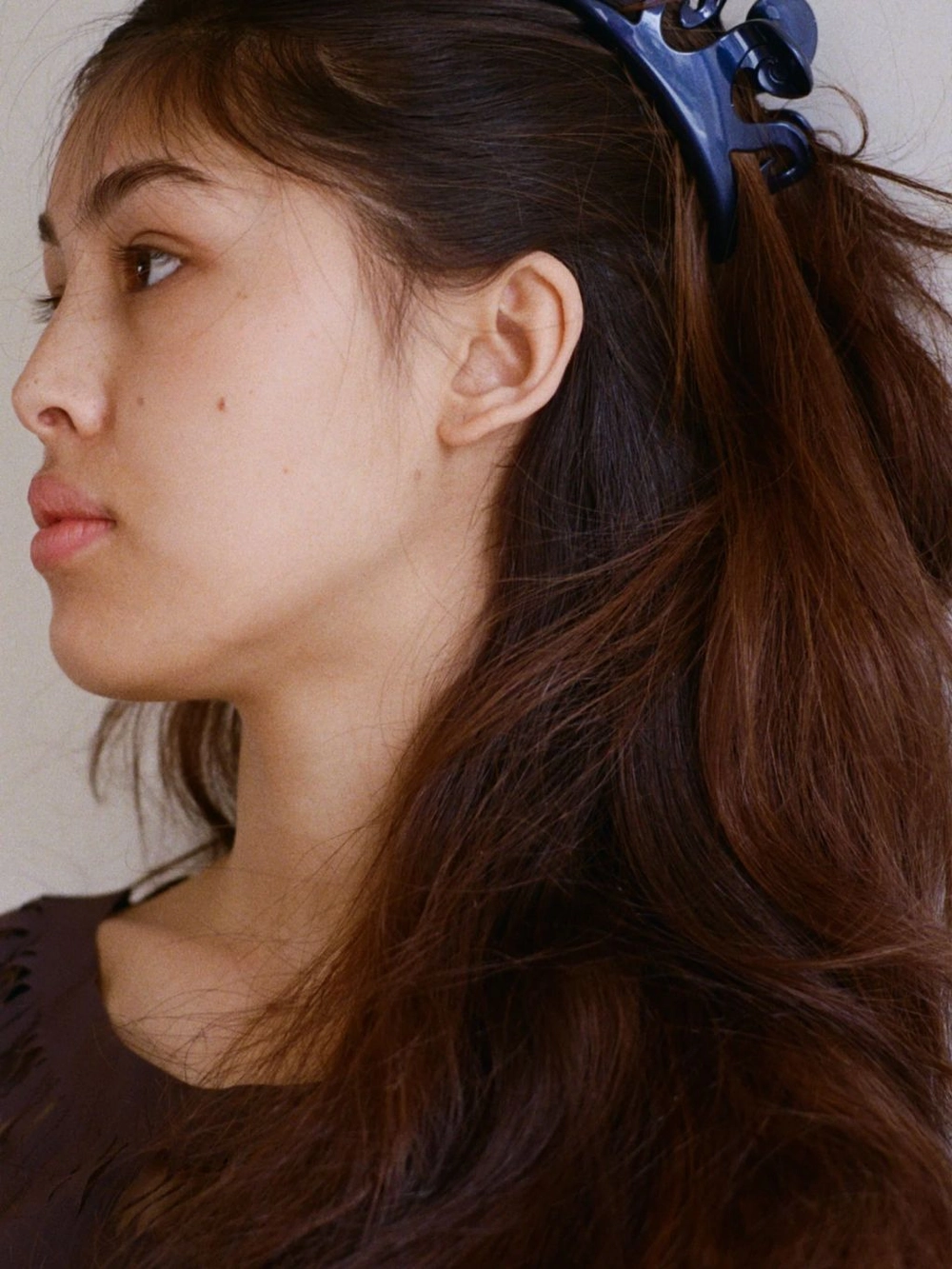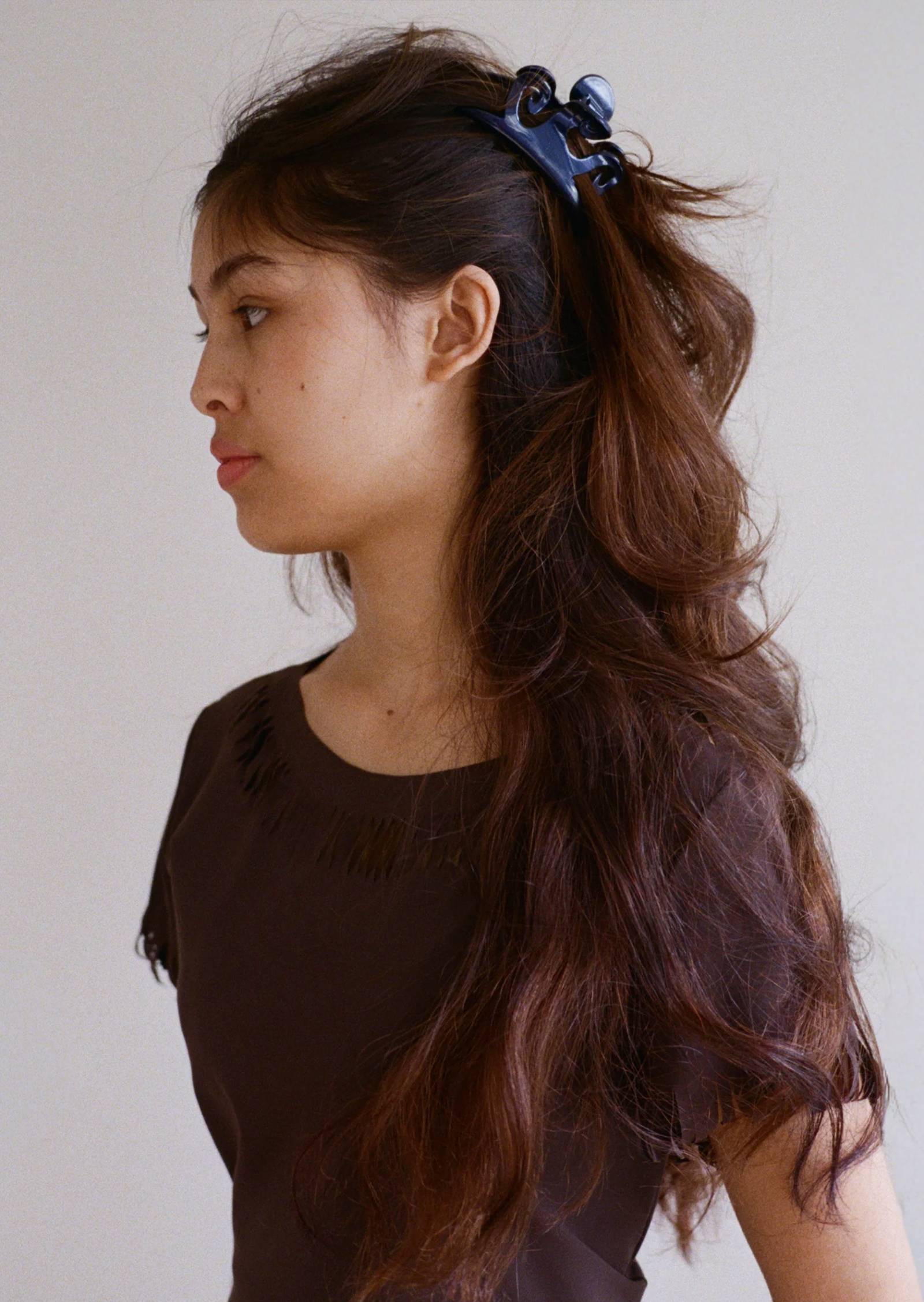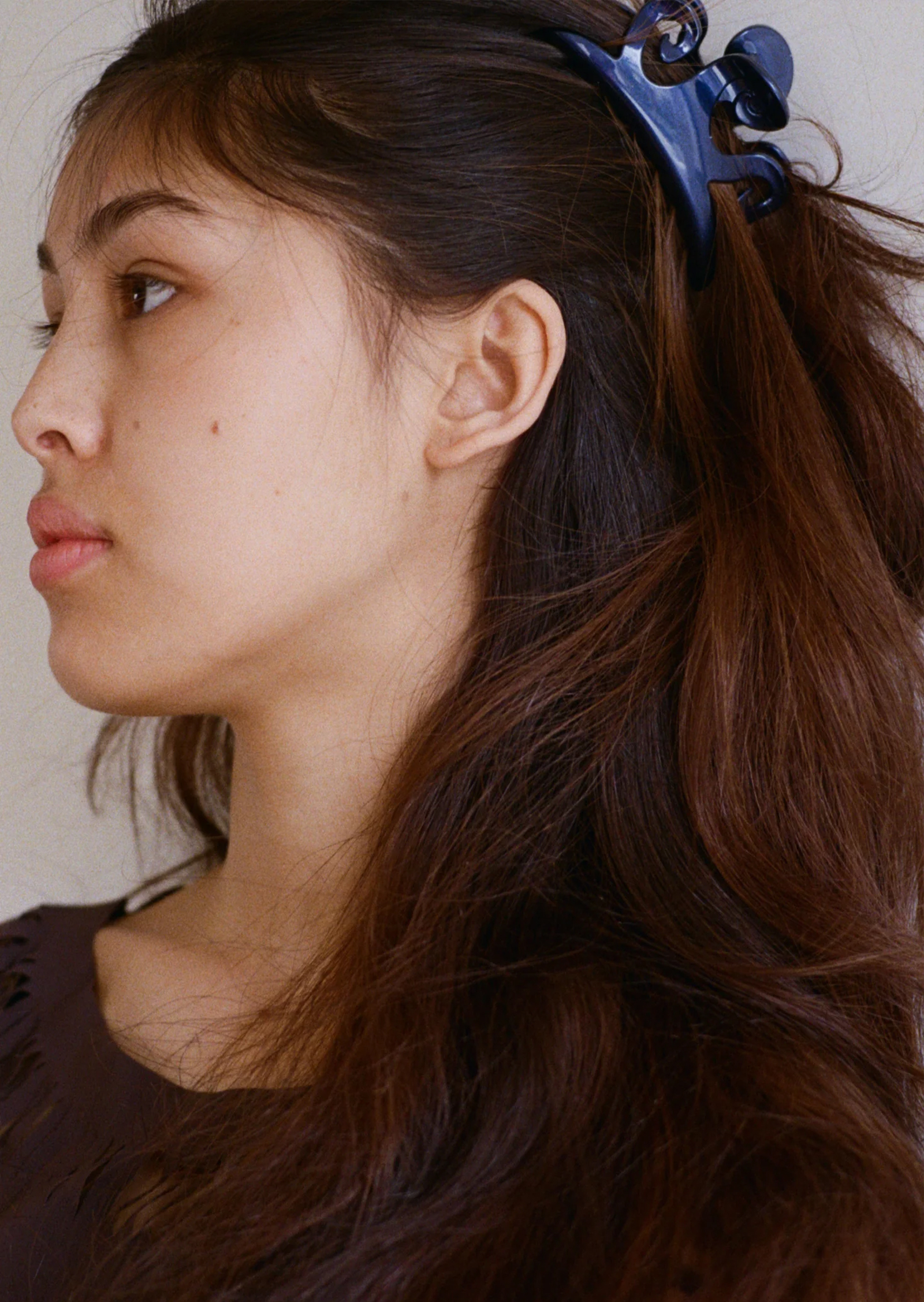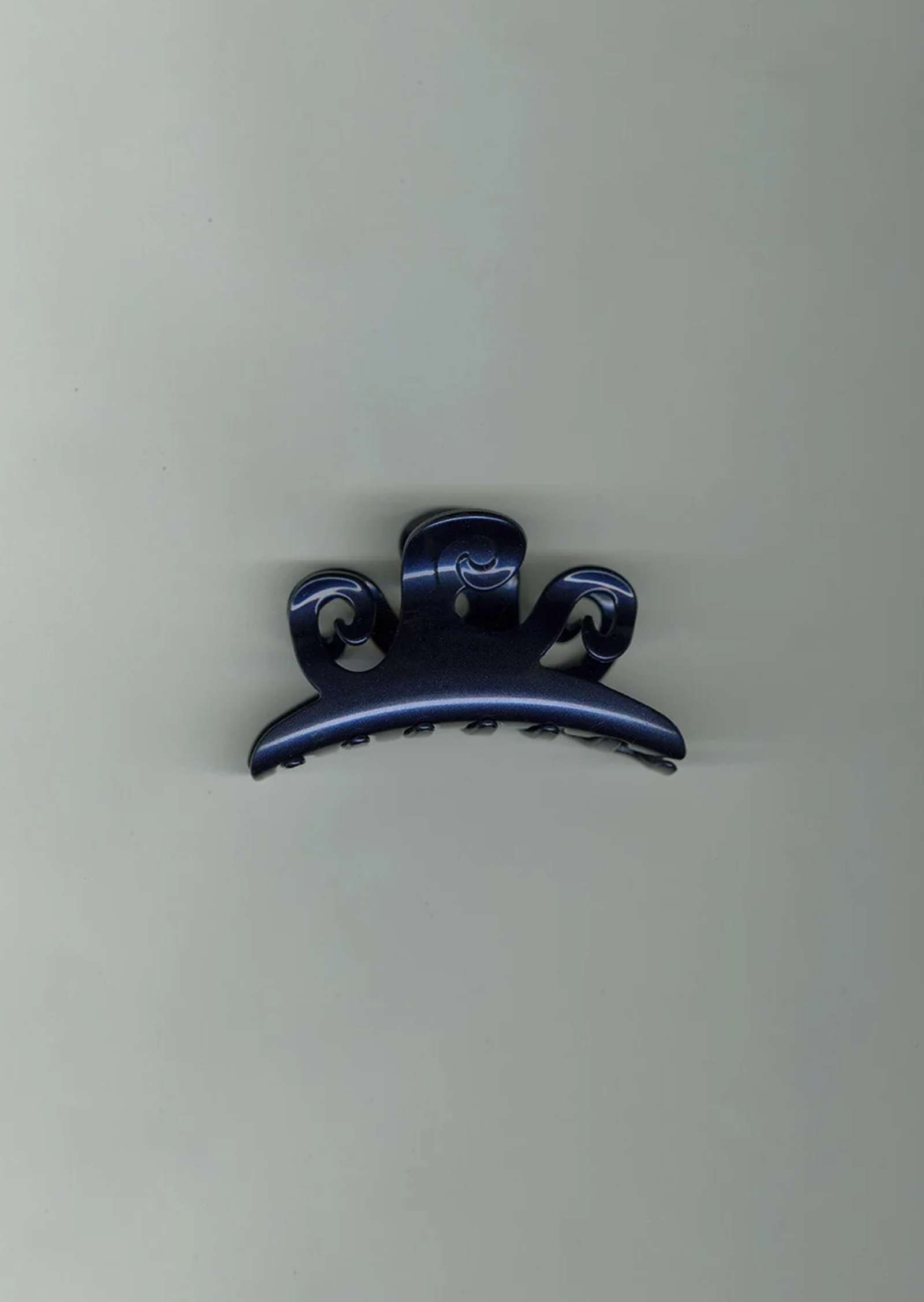 조각적인 아름다움과 기능성을 겸비한 리버 클로 클립은 프랑스에서 셀룰로오스 아세테이트 소재로 제작되었습니다. 광택 마감 처리로 부드럽고 새틴같은 윤기를 더하며, 특허받은 덮개형 스프링이 머리카락을 단단하고 매끄럽게 잡아줍니다. 브랜드의 시그니처 나선형 문양을 일상 액세서리로 정교하게 풀어냈습니다.