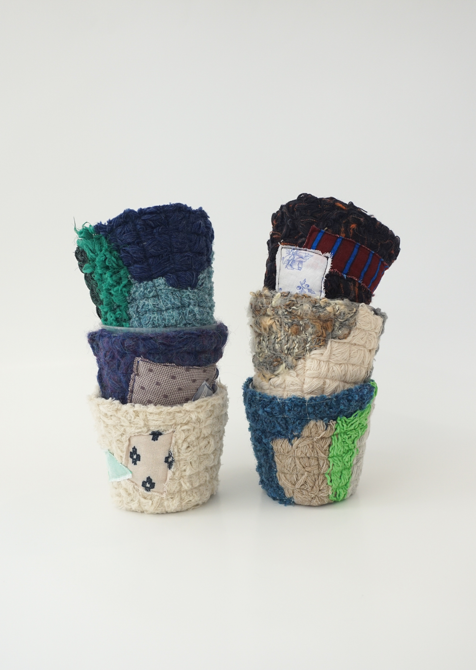 직조를 하고 남겨진 실과 양모를 켜켜이 쌓아 만들었습니다.