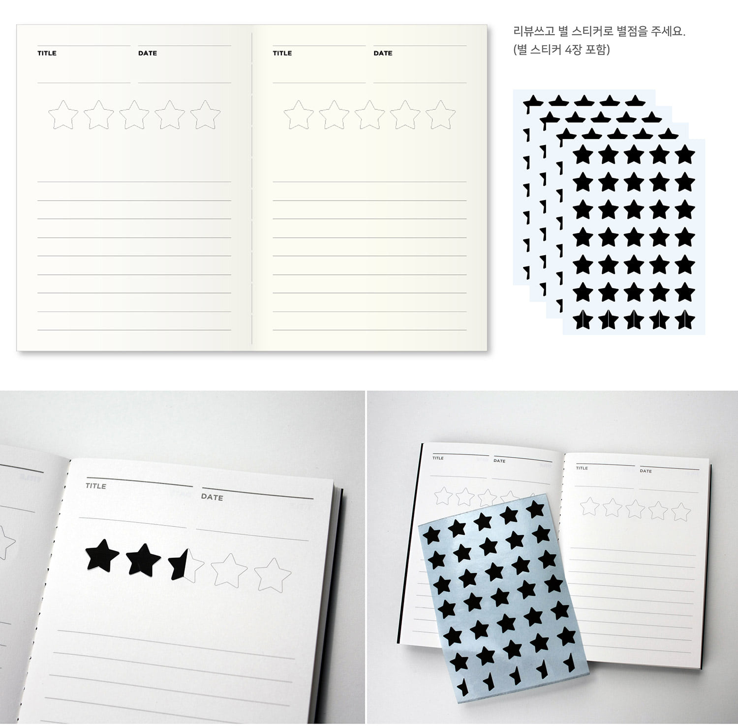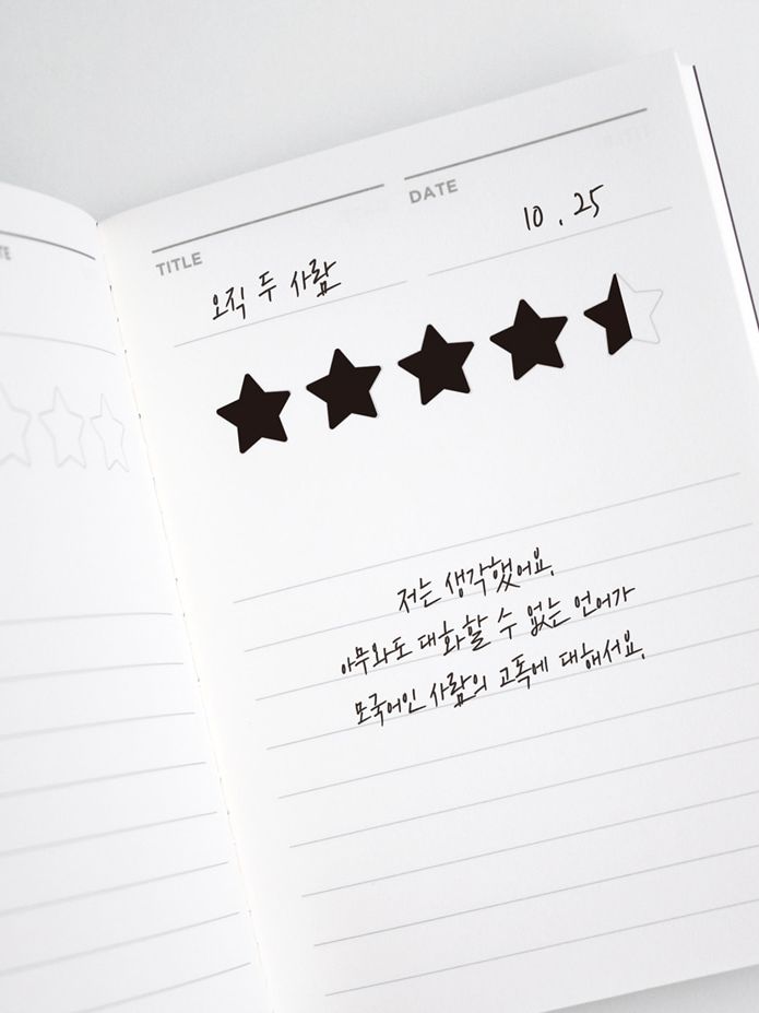 자신만의 리뷰를 남기고 함께 들어있는 별 스티커를 이용해 별점을 매겨보세요.
