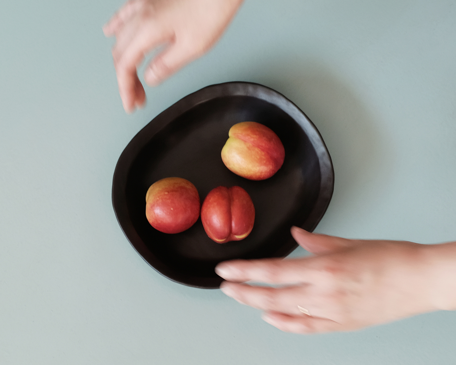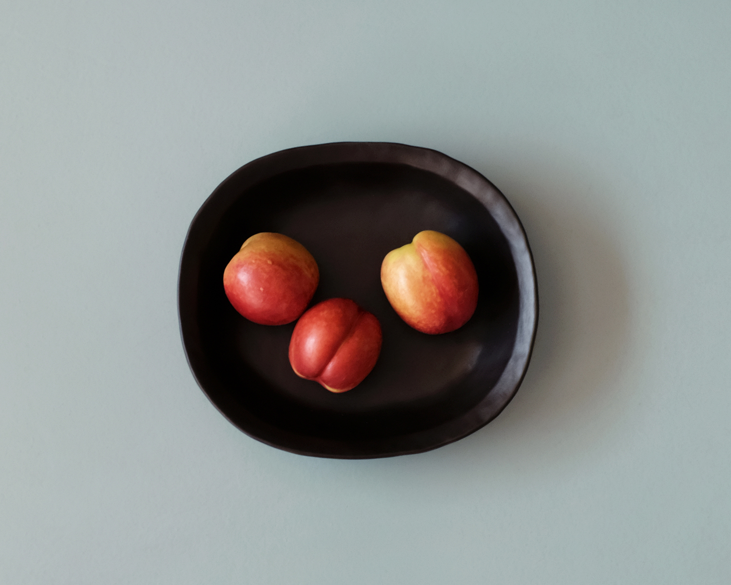 접시의 뒷면의 검은 얼룩은 유약을 닦아내는 과정에 생기는 자국으로 불량이 아닙니다.