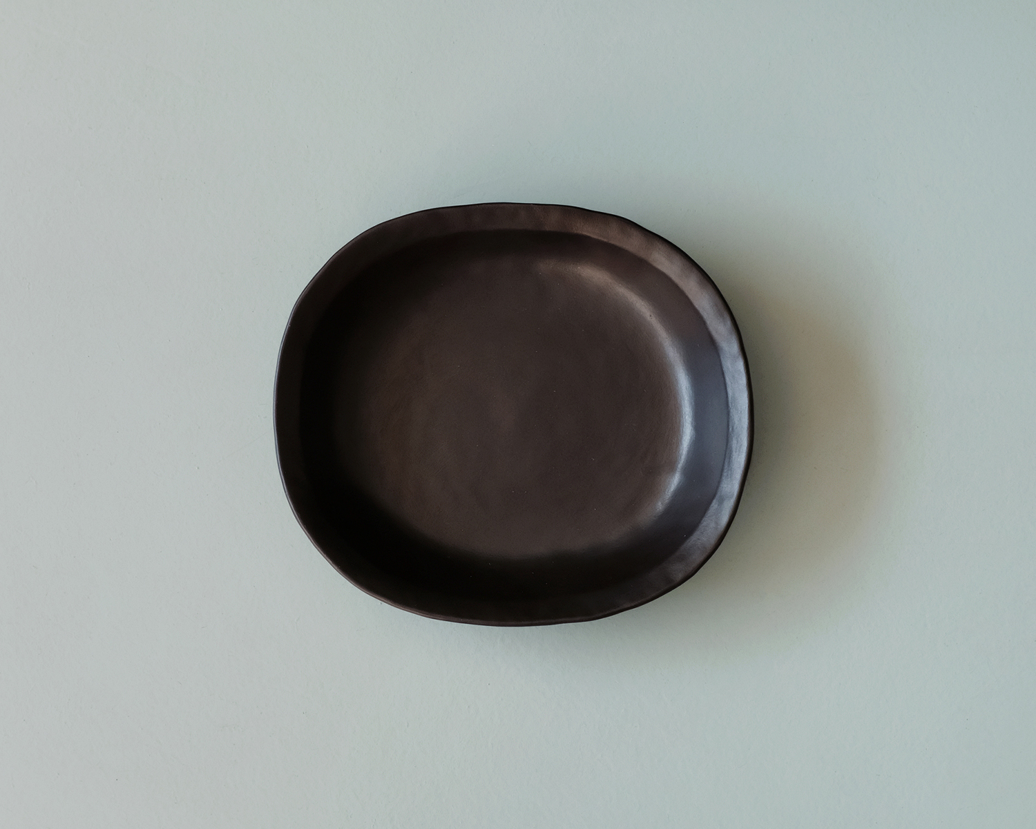 매트한 소재의 검은 유약으로 마무리되었고 빛에 따라 갈색을 띱니다.