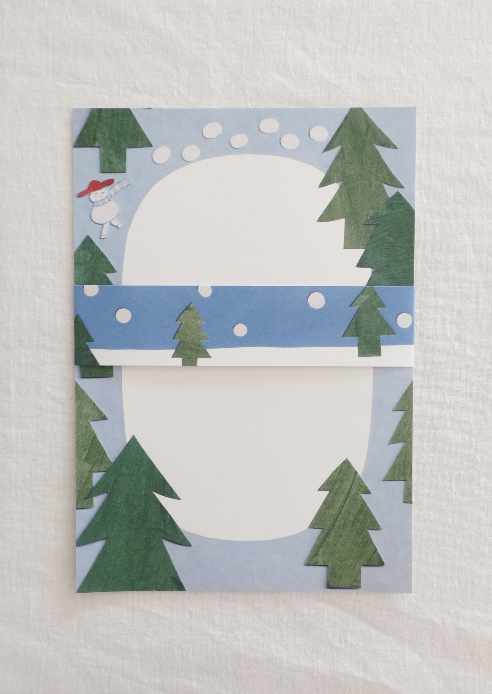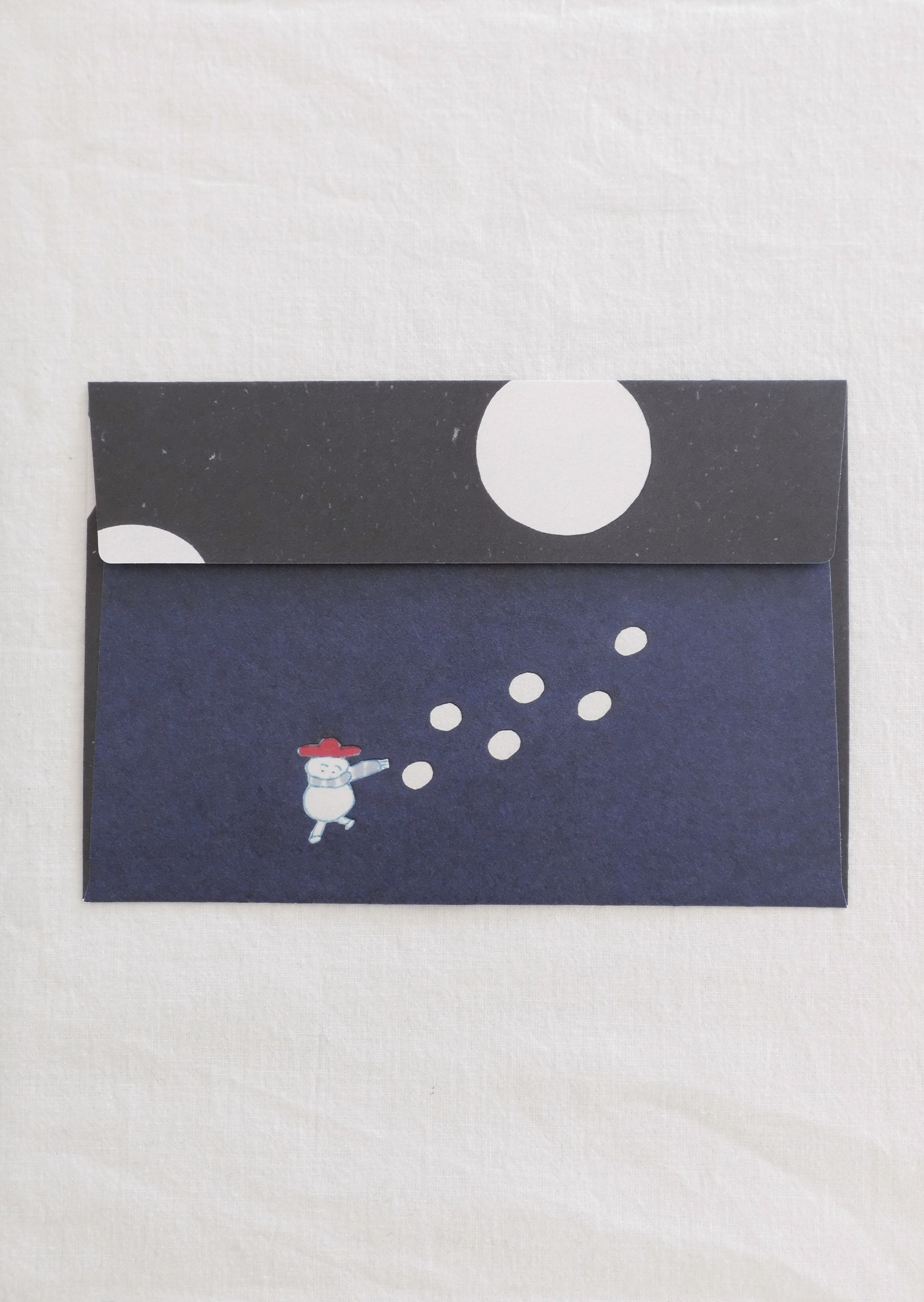 눈사람이 걸어가며 눈송이 발자국을 남기는 모습의 편지지입니다.