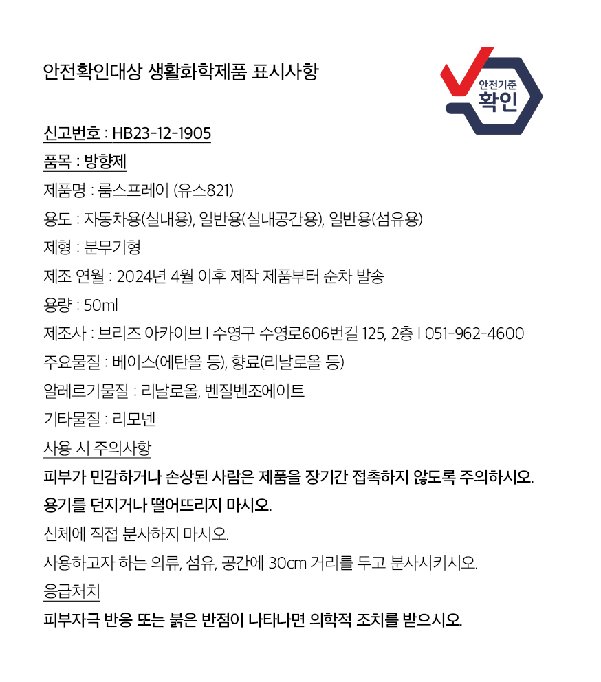 오래도록 향이 머무르는 브리즈 아카이브 퍼퓸 룸/패브릭 스프레이입니다.