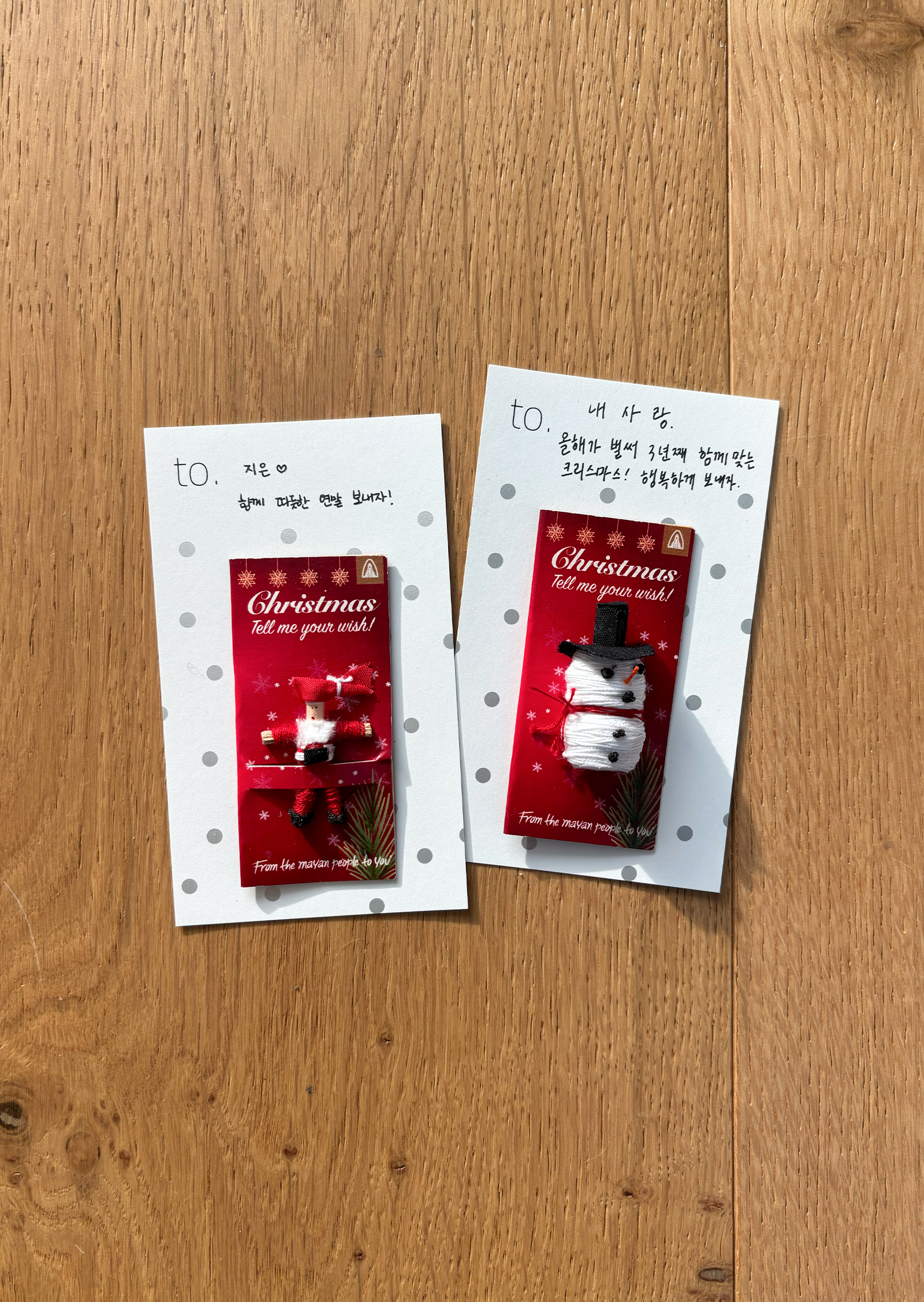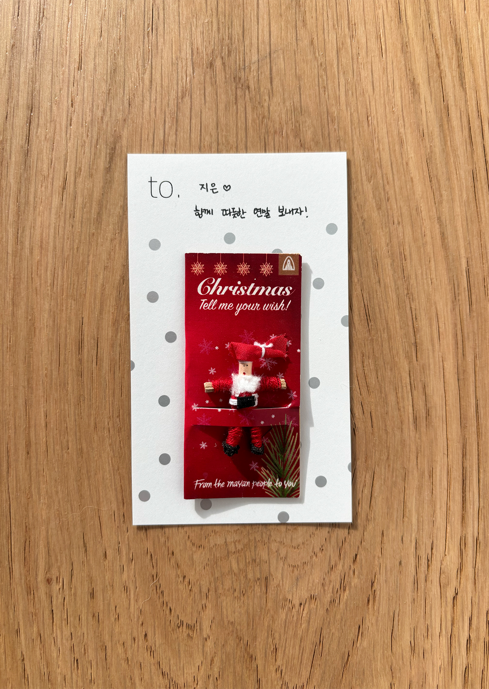 소중한 사람을 위해 준비한 선물 위에 크리스마스 걱정인형을 포개어 더욱 사랑스럽게 마음을 전해보세요.