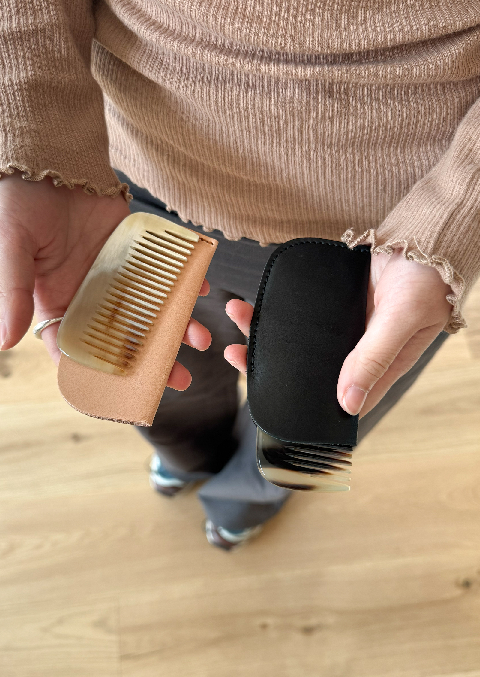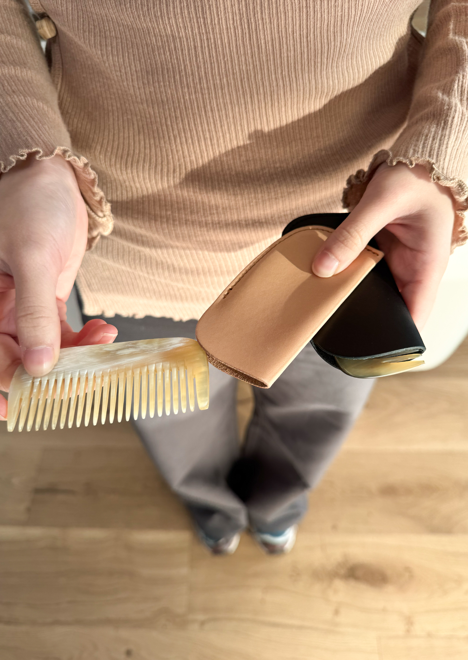 베지터블 태닝 가죽으로 만든 빗 케이스입니다.