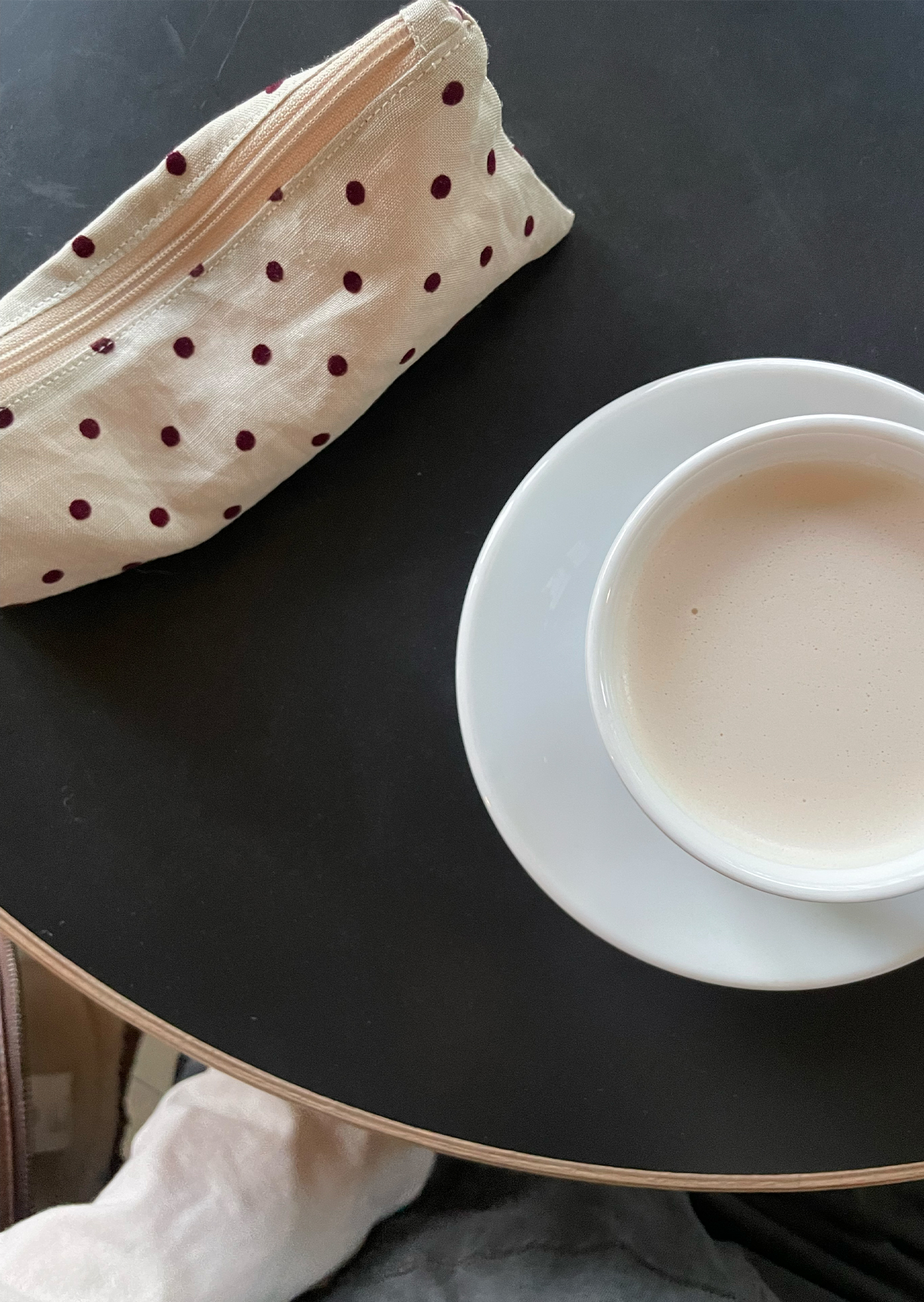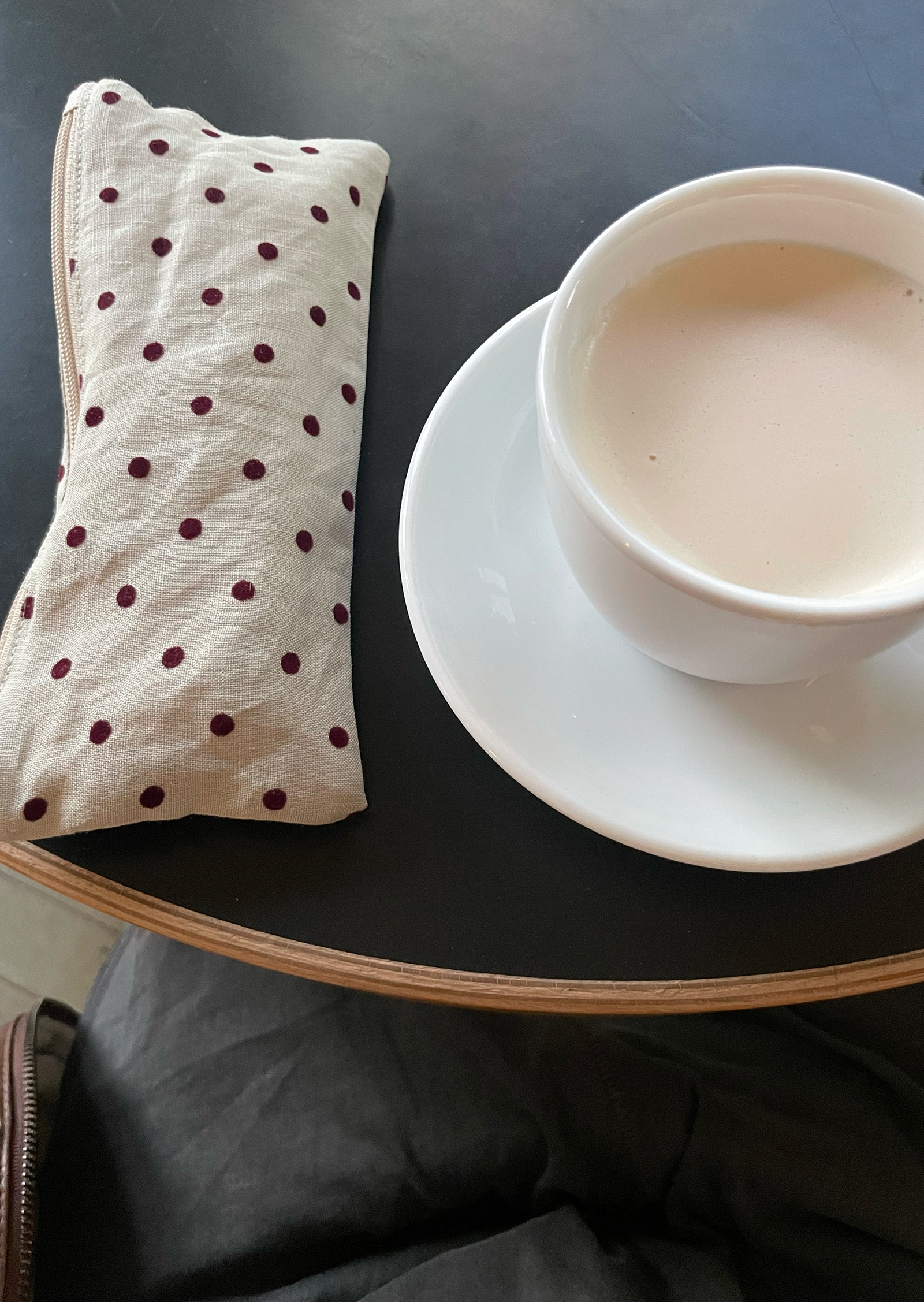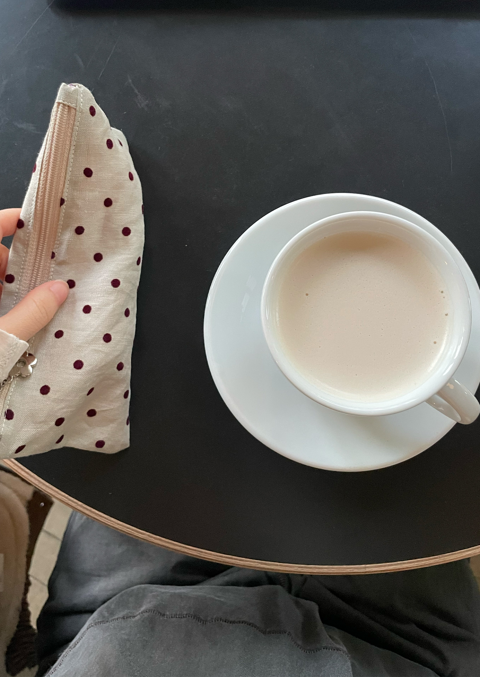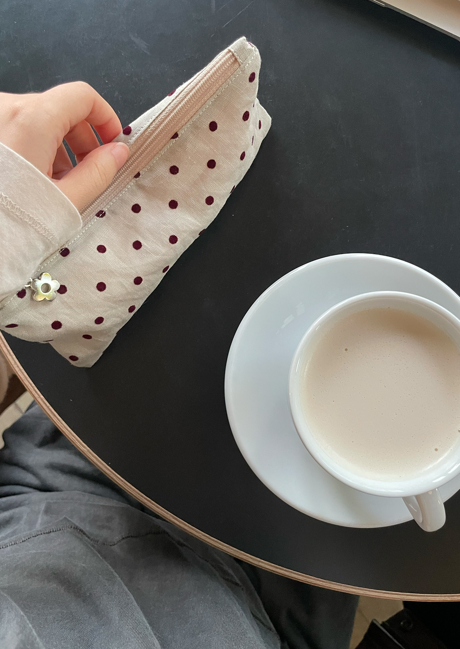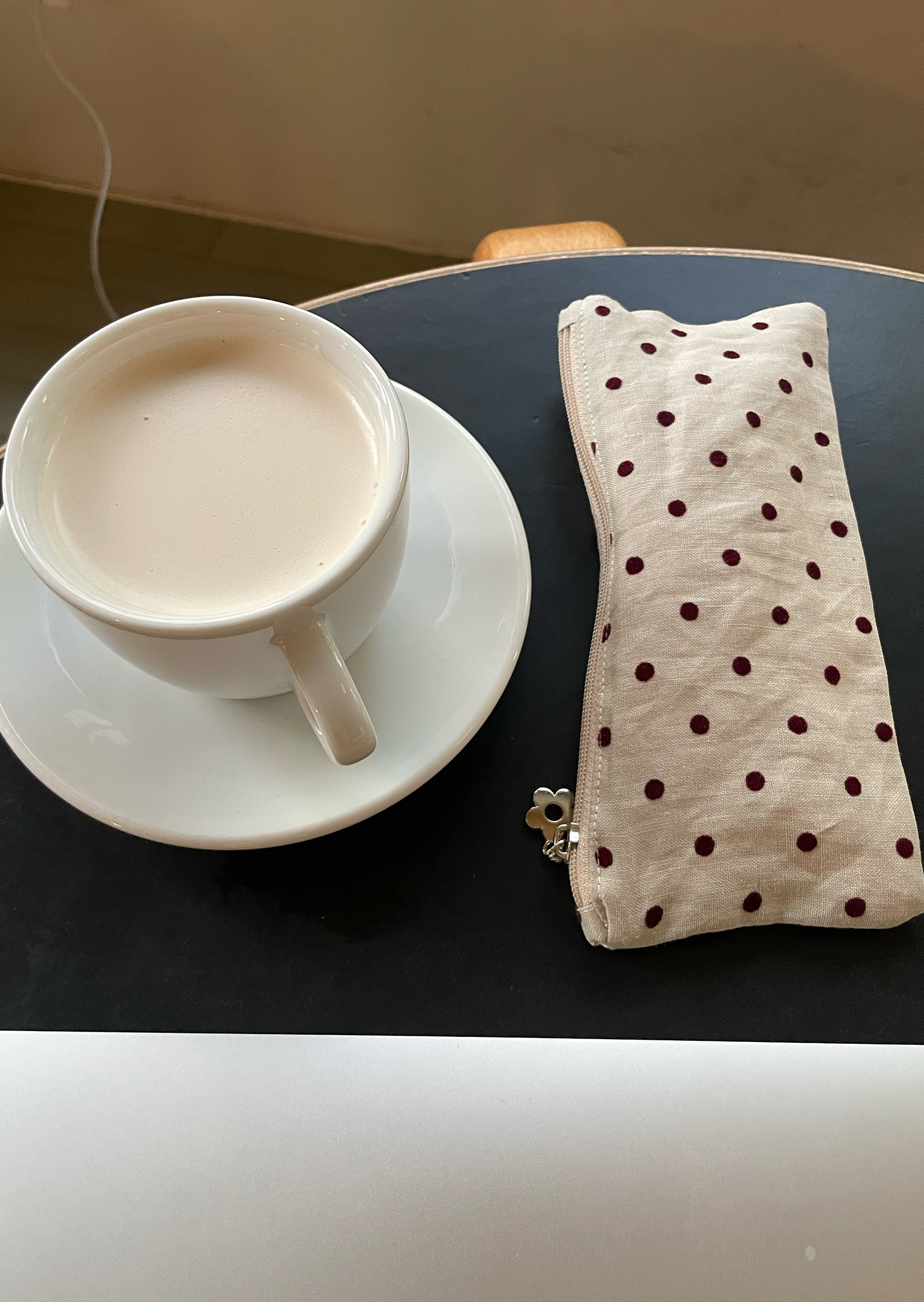 필기구들이 넉넉히 들어가는 사이즈와 심플한 쉐입, 은근한 포인트가 되어주는 패턴.