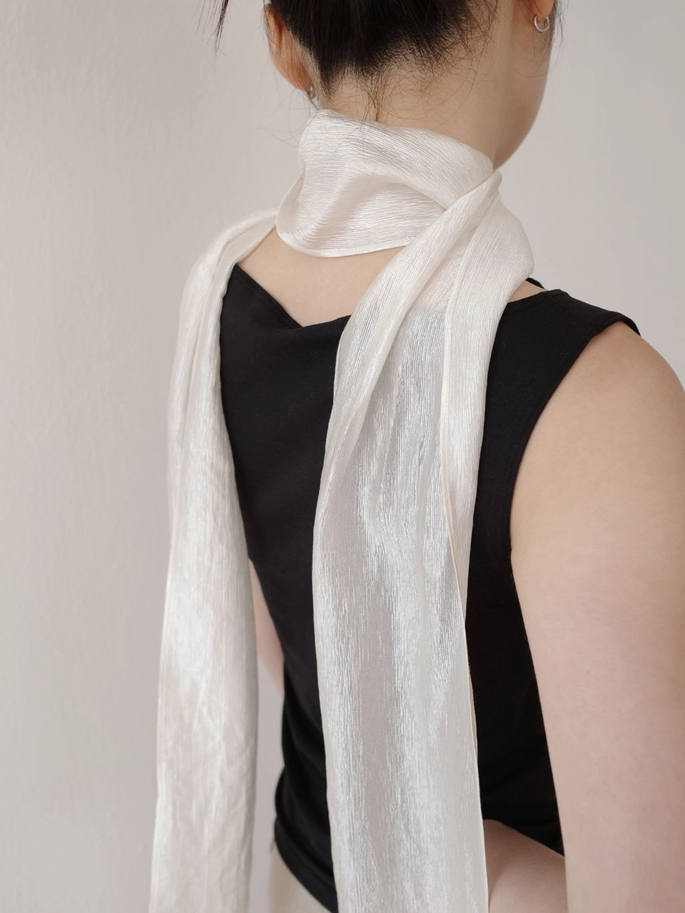 유난히 길다는 이번 여름을 앞두고 새롭게 선보이는 샤샤 스카프입니다. 흐르는 듯한 부드러운 촉감과 은은한 광택을 가진 원단에 주름을 더해 제작하였습니다. 사진에서 보이는 원단 텍스처를 꼭 확인해 주세요.